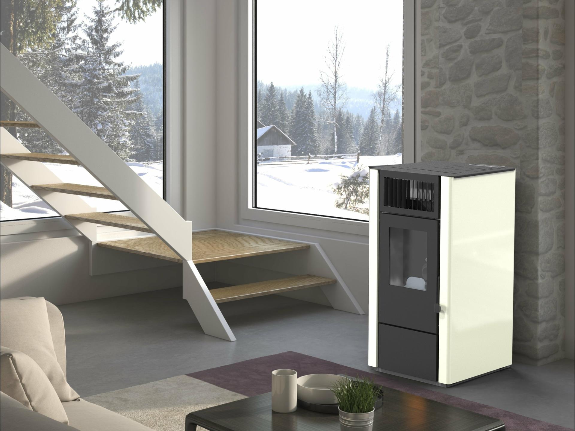 Stufa a pellet economica, efficiente e affidabile con rivestimento in acciaio.